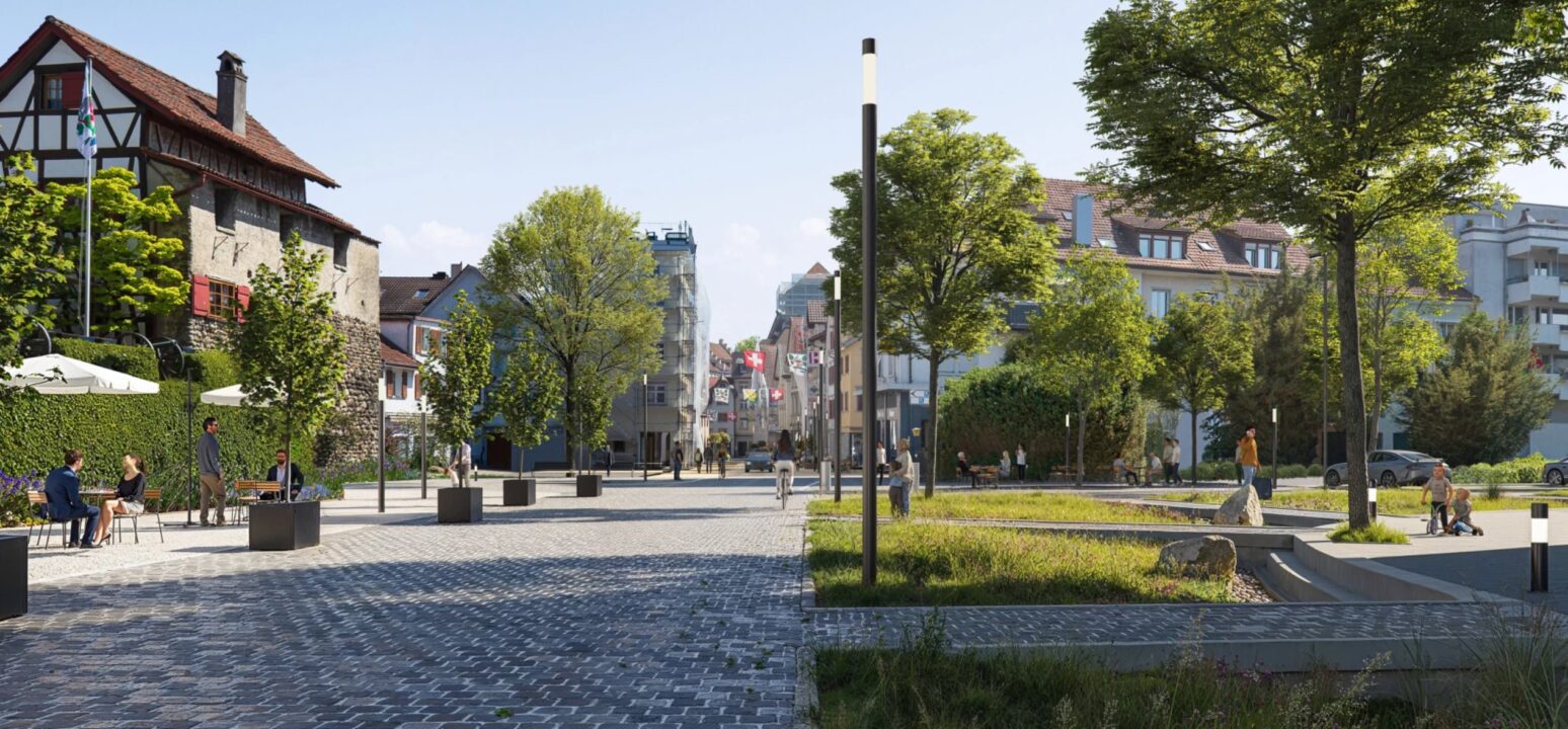 • Neugestaltung des historischen Kerns der Altstadt von Arbon. Das sind die Promenadenstrasse und die Hauptstrasse.